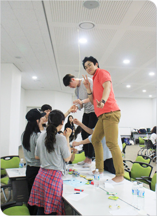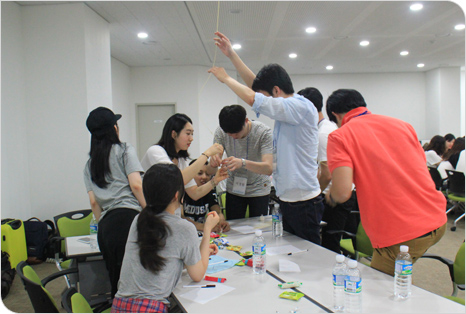 ‘화합과 소통’ 시간에는 6개의 팀이 서로에게 궁금한 사항들을 종이에 적어 정서 교류의 중요성을 배웠다. 또 자신에 대한 4가지의 이야기 중 가짜 이야기 1개를 지어내 돌아가며 맞추는 시간을 통해 팀원들에 대해 보다 자세히 알아가기도 했다. 화합과 소통의 마지막은 스파게티면 20개와 마시멜로우 2개를 활용한 미션으로 마시멜로우를 가장 높은 위치에 있게 하는 것이다. 마시멜로우 미션은 긍정적인 소통을 후에 이뤄진 탓에 보다 적극적이고 활발하게 진행되었다.