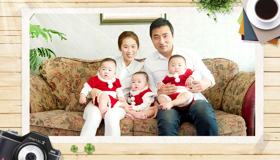 삼둥이들은 얼굴도 성격도 닮은 듯 다르다. 첫째 성무는 장남답게(?) 성격이 의젓하고 무던하다. 부부 말에 따르면 성무가 없었으면 세 아이를 어떻게 키우나 싶을 정도로 듬직하다고 한다. 딸로 태어난 둘째 라윤이는 넘치는 애교로 주변사람들을 늘 웃게 만든다. 이날 사진촬영에도 남다른 재능을 보여 주변사람들의 웃음을 여러 번 자아냈다. 셋째 성민이는 막내라 어리광이 많지만, 낯선 사람이나 환경에 잘 적응하는 장점이 있다.