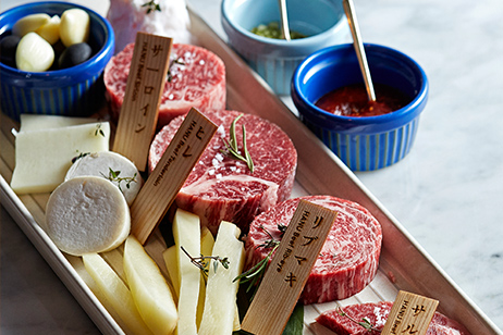 2. 런치타임: 도쿄등심은 브레이크 타임이 없습니다. 정오부터 17시까지 런치메뉴도 구성되어있는데 디너의 절반에 가까운 가격으로 풀세트 메뉴를 즐길 수 있답니다. 청담점의 경우 런치타임에 4인 이상 방문하면 추천 와인 한 잔씩을 무료 제공한다고 해요. 선릉점에는 직장인이 많은 지역 특성을 고려해 한우규동, 사케동을 비롯해 일본식 샤브샤브인 스키야끼 세트를 착한 가격에 판매하고 있습니다.