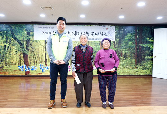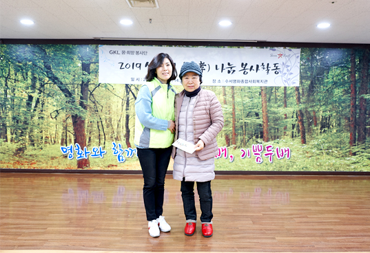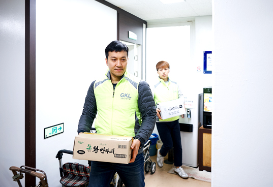 GKL 꿈・희망 봉사단은 매년 우리 주변의 소외 이웃을 위해 쌀, 생수, 김장김치 및 방한용품, 겨울나기 연탄 등을 전달해 오고 있습니다. 물품을 기부하는 것도 좋지만, 오늘처럼 직접 소외이웃들과 마주하니 더 보람 있는 봉사활동이었습니다.