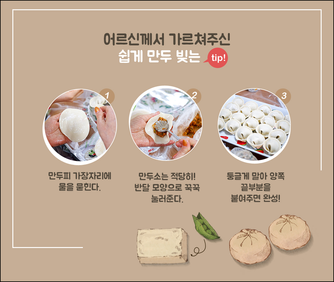 ↑ 어르신들의 노하우를 배우며 함께 빚은 만두들!