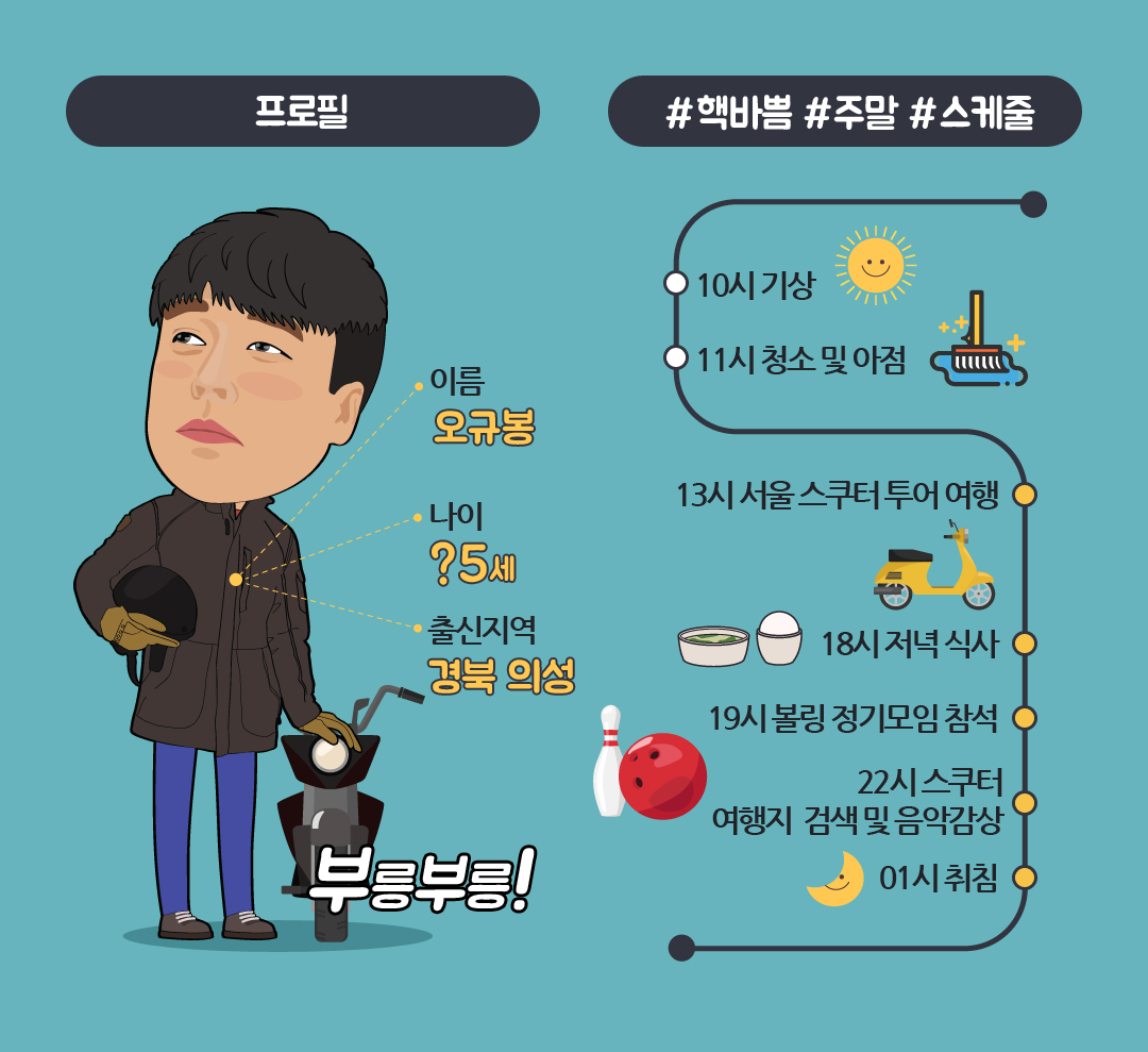 회사에 매일같이 스쿠터를 타고 다니는 오규봉 대리에게 스쿠터는 트레이드마크가 된지 오래입니다. 맨 처음 스쿠터를 타게 된 계기는 볼링 장비를 싣고 다니기 위함이었다고 하는데요, 막상 스쿠터를 끌어보니 다른 유용한 점도 많았다고 합니다. 1인 교통수단으로서 비용이 저렴할 뿐만 아니라, 서울 시내에서 가장 간편한 교통수단이면서도 주차 공간 걱정도 상당히 덜 하기 때문이죠.